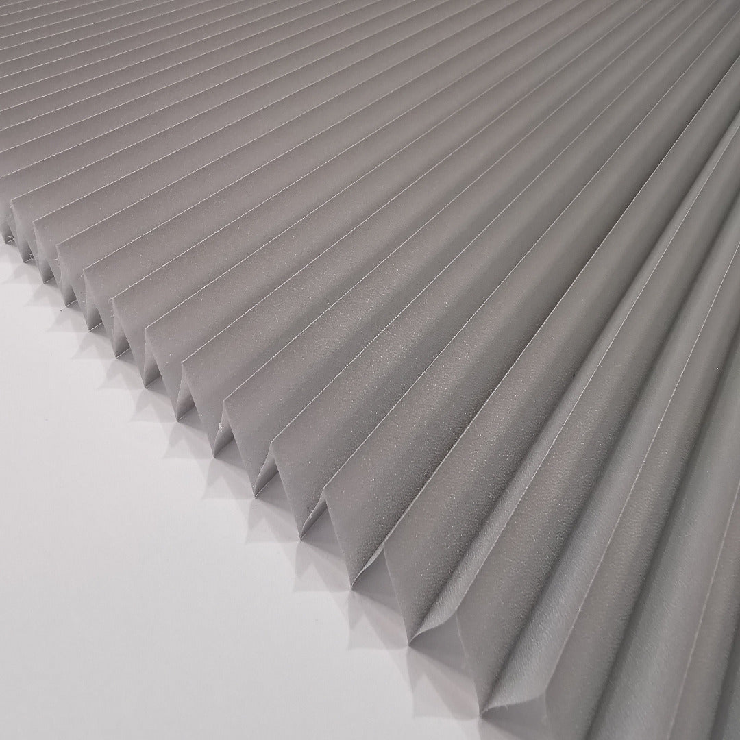 Der Plissee-Stoff OPAL überzeugt durch seine feine, gleichmäßige Struktur und ein zeitloses Design. Er lässt Tageslicht sanft in den Raum, ohne zu blenden, und reduziert gleichzeitig die Wärmeeinstrahlung. So bleibt der Raum auch an warmen Tagen angenehm kühl.