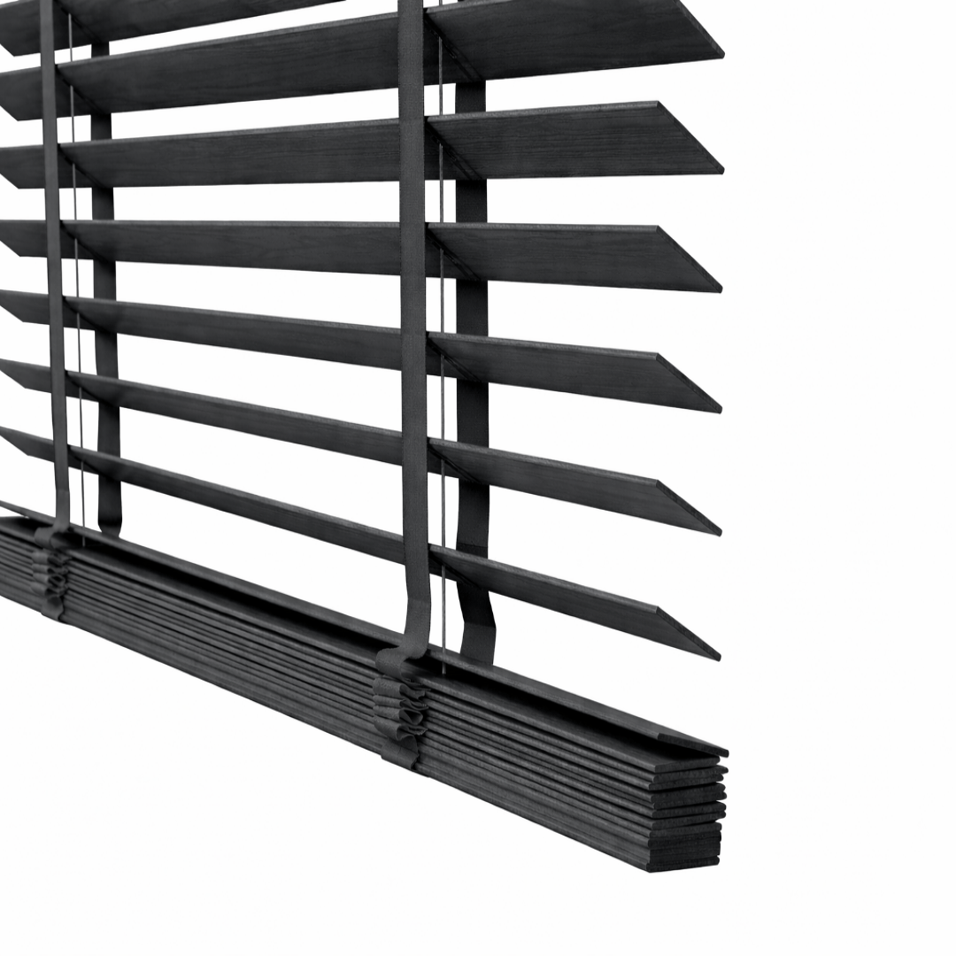 100% Wasserdichte Echtholz-Jalousien in Anthrazit – 50 mm Lamellen für feuchtraumgeeigneten Stil